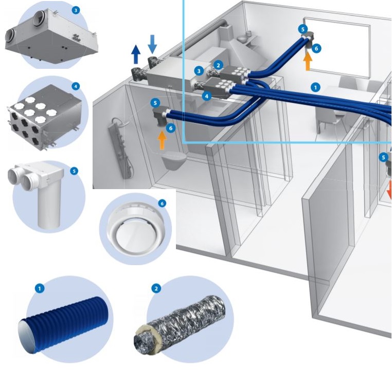 Ventilačný rekuperačný systém vnútorný priemer 63mm- BlauFast RK potrubie antibakteriálne ponúka kompletné riešenie pre domácu ventiláciu rekuperáciu pre vytvorenie siete.