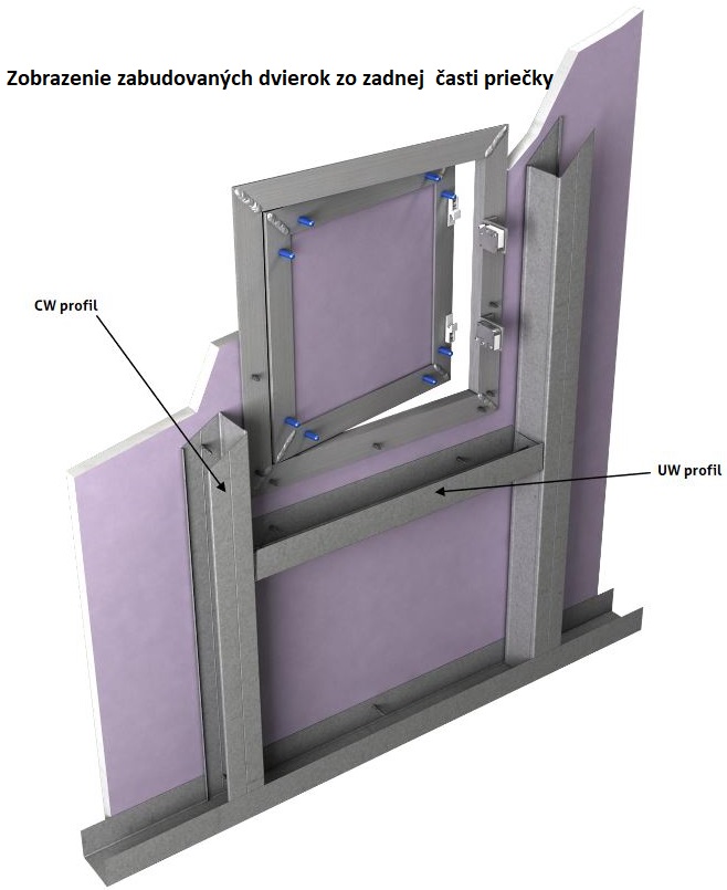 Revízne dvierka do sádrokartónu.Určené pre sadrokartónové steny a stropy 12,5 mm.Umožňuje rýchly a pohodlný prístup k skrytej časti inžinierskych sietí.Vhodné do miestností s vysokou vlhkosťou.Revízne dvierka do sádrokartónu je hlavná nosná konštrukcia a rám sú vyrobené z hliníkového profilu.