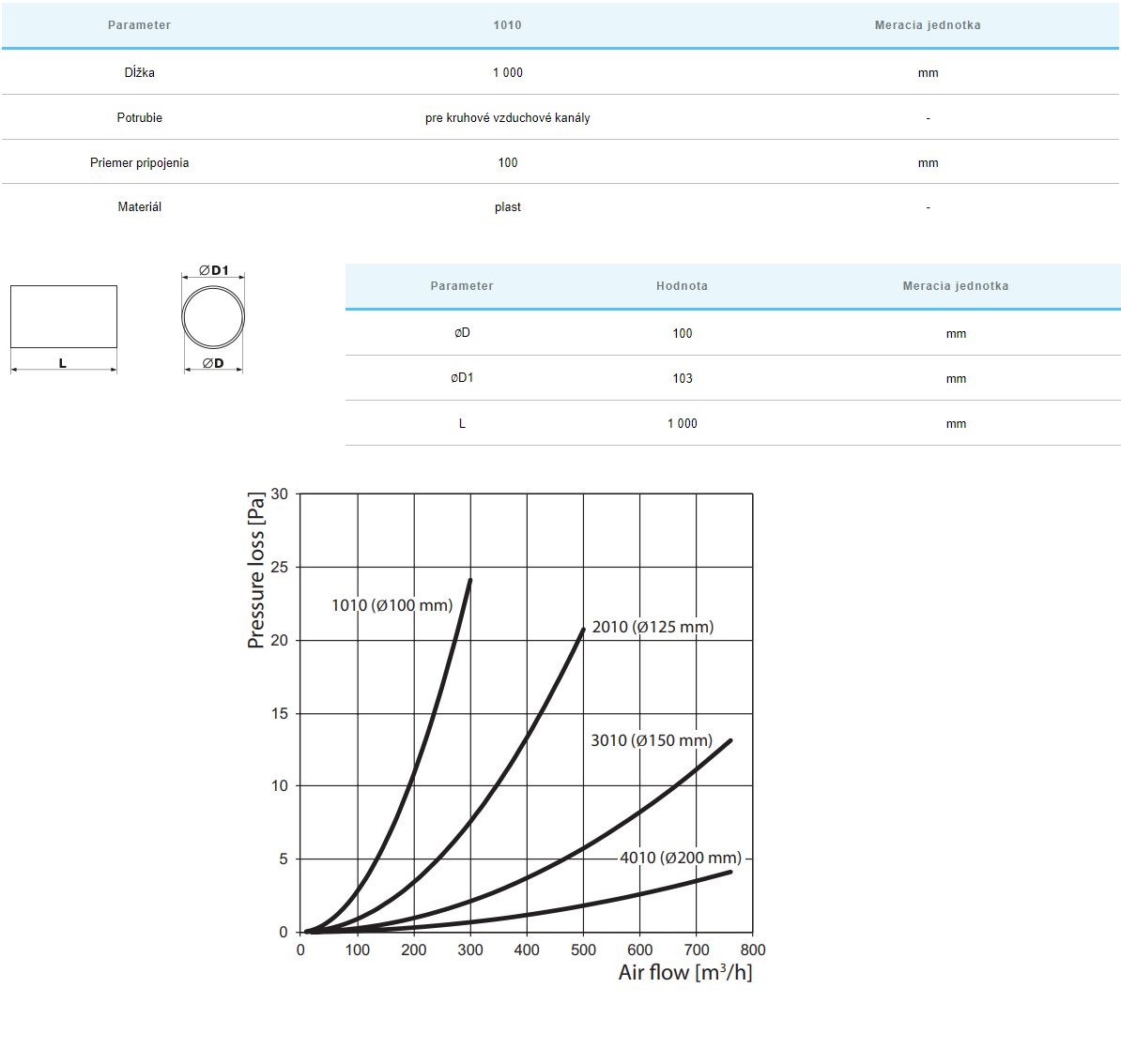 Celzia up to +70 st Celzia.Priemer a dĺžka plastového potrubia na vzduchotechniku je udané v