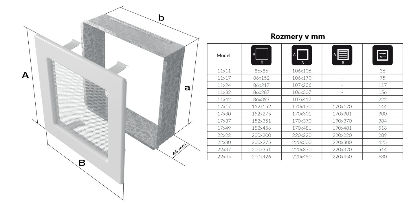 Krbová mriežka je zložená z 2 častí: montážneho rámika (je súčasťou