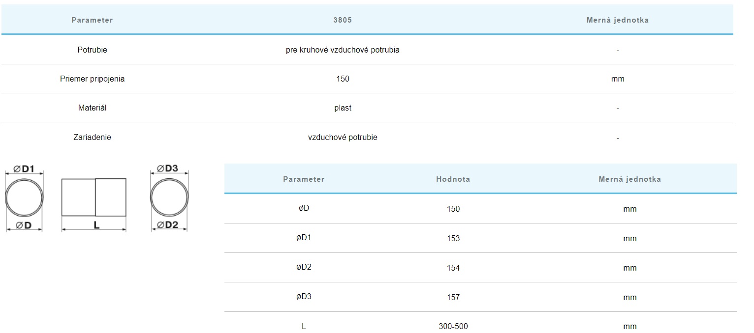 Teleskopické prevedenie z dvoch častí.Do hrubšej časti sa dáva rekuperátor a tenšej vonkajšia krycia mriežka.