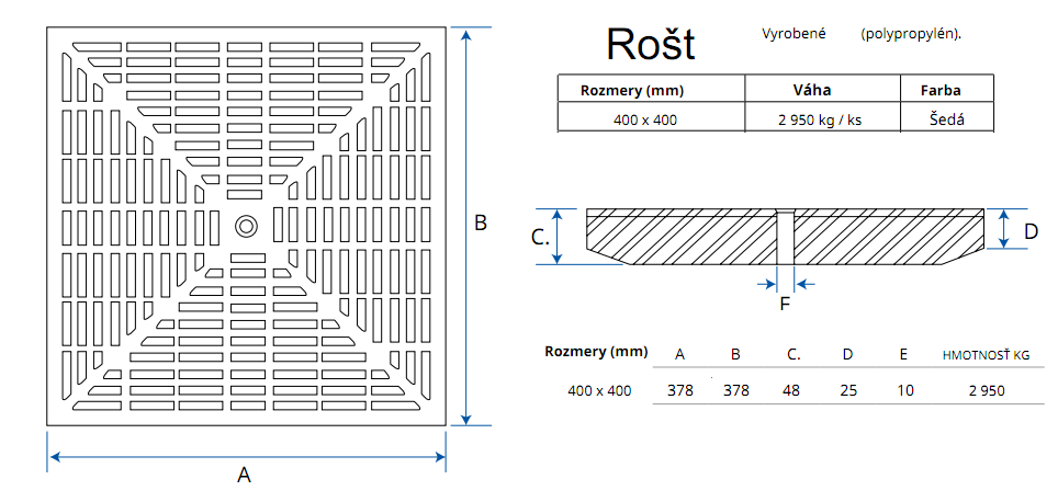 400x400 Plastový rošt k revíznej šachte 400×400 Plastový rošt k r...