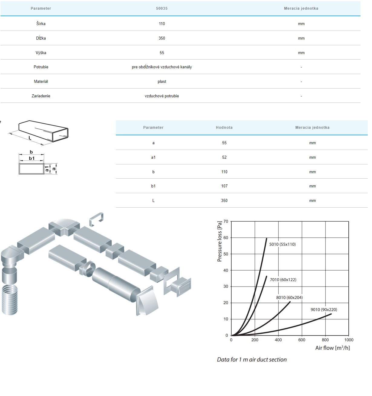 Celzia up to +70 st Celzia.Priemer a dĺžka plastového potrubia je udané v milimetroch.Plastové potrubia hranaté sú určené pre prívodné a odsávacie vetracie systémy rôznych priestorov.