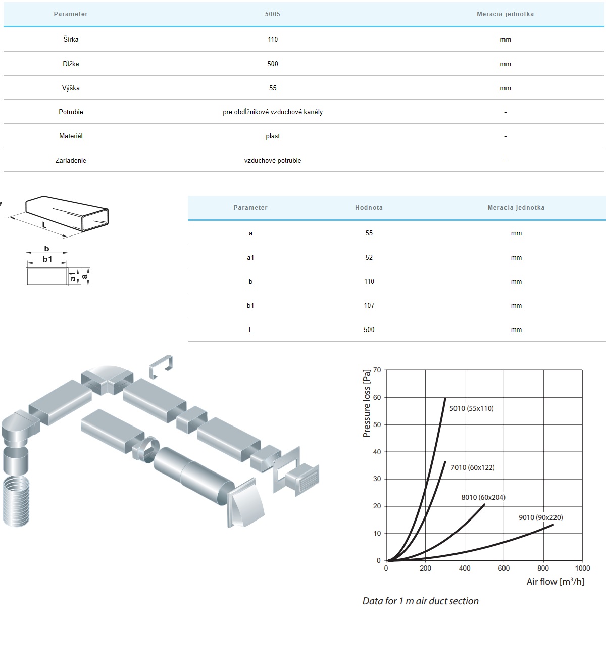 5005 Plastové potrubie hranaté 55x110mm dĺžka 0 5005 Plastové potrubie hranaté...