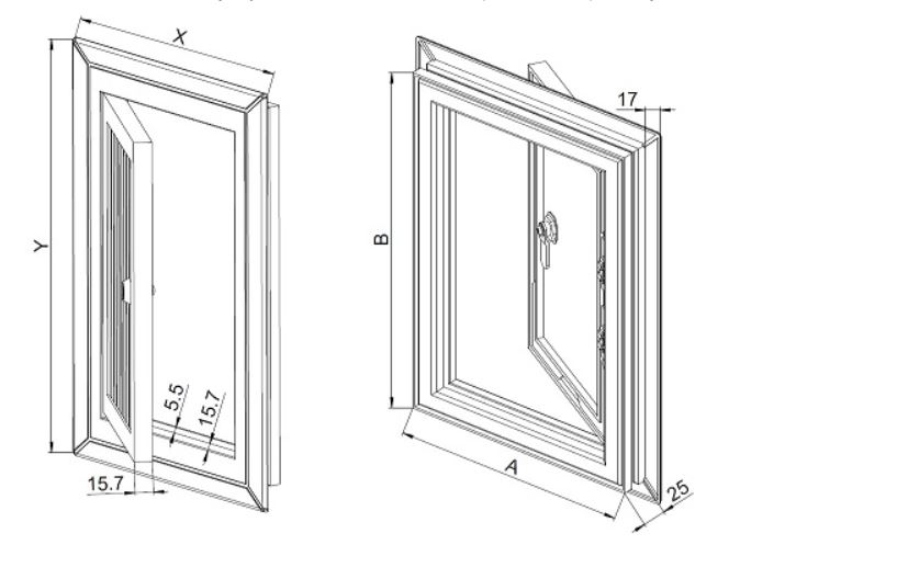 veľkostiach.Môžu byť tiež použité ako prielezy na strop.Revízne dvierka