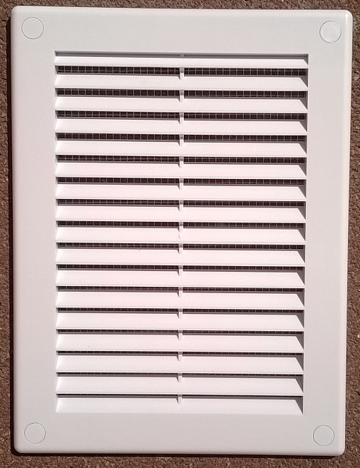 Vetracia mriežka plastová biela so sieťkou.Krycia plocha: 200x250mm :materiál:ABS plas.odolný proti UV žiareniu