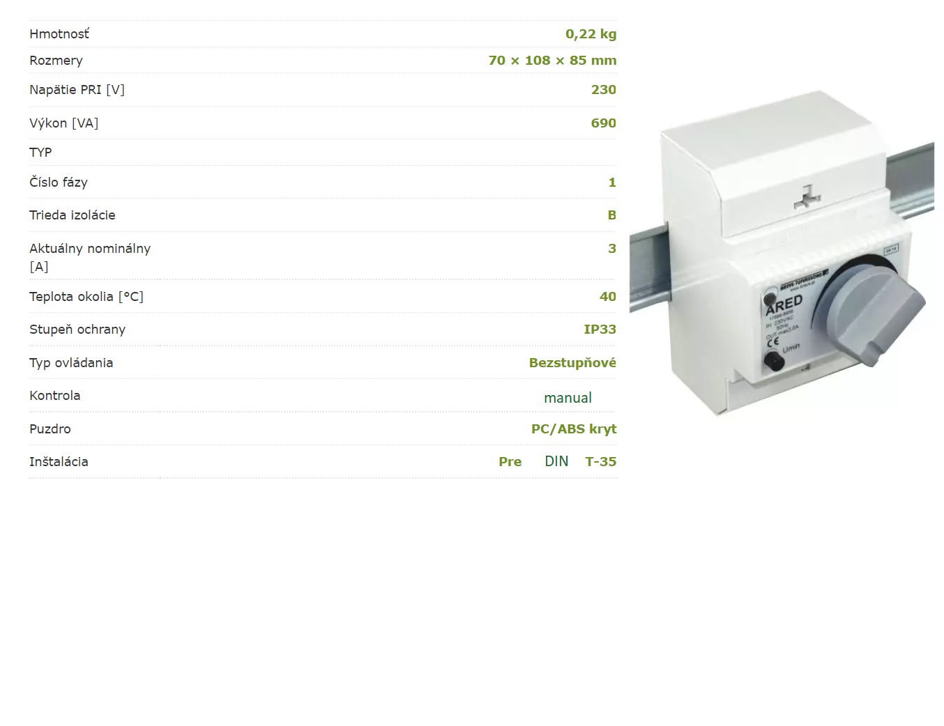 zariadenia. Zariadenie je určené na montáž na DIN lištu a je vybavené