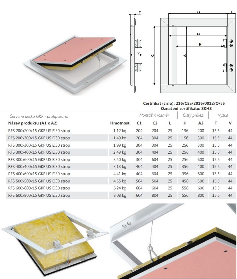 ARFS 300x300x15 GKF US EI30 strop ARFS 300x300x15 GKF US EI30 st...