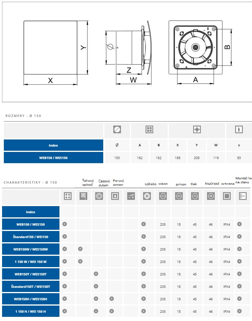 Montáž alebo pripojenie do potrubia.150 mm .Design:Moderný dizajn a estetický vzhľad.