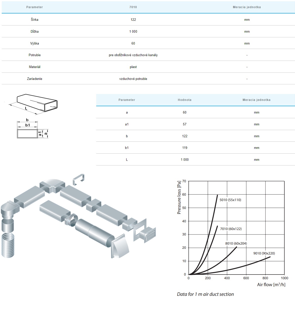 Awenta KP120-10 Plastové potrubie hranaté 60x120mm dĺžka 1m