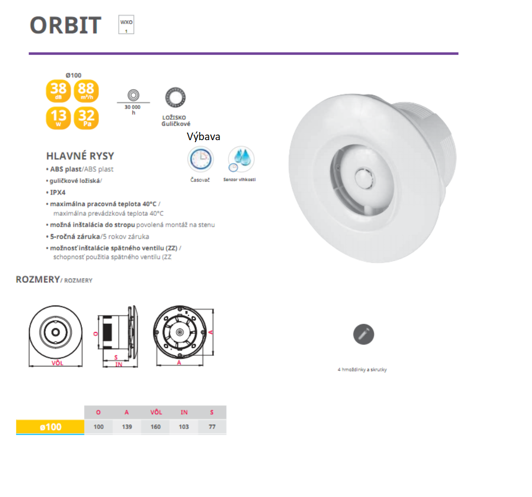 Označenie H Ventilátor je vybavený časovačom a čidlom vlhkosti .Čidlo