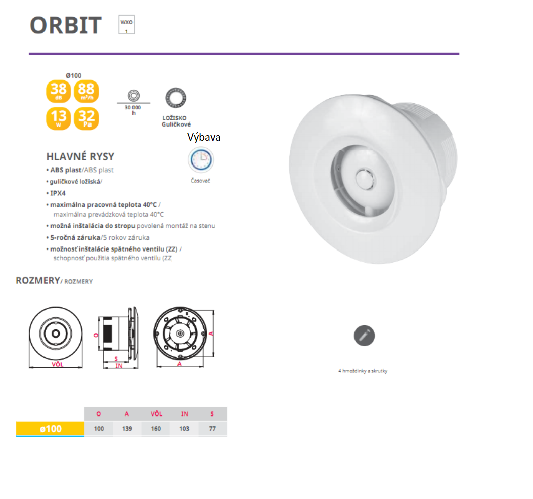 AWENTA ORBIT -VXO 100T Ventilátor do stropu  +časový dobeh -vhodná na použitie do stropu-v strede LED dióda červená AWENTA ORBIT -VXO 100T Ventilá...