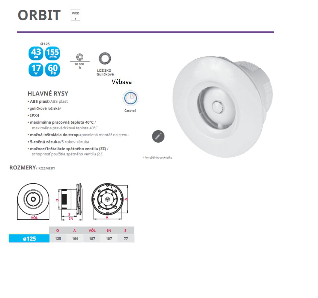 vetracej šachty alebo potrubia.Výbava:.Guličkové ložisko.Životnosť 30 000hodín