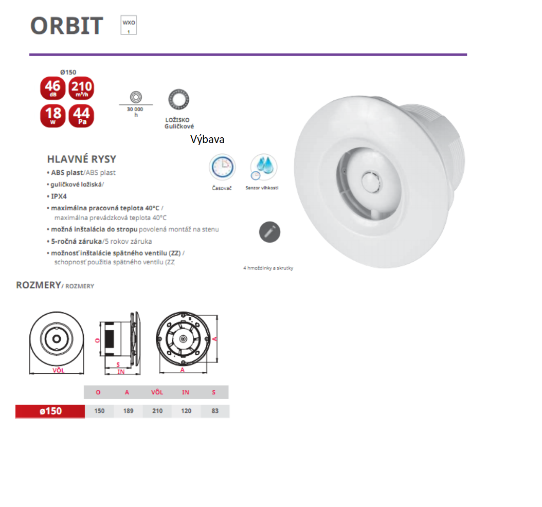 AWENTA ORBIT -VXO 150H Ventilátor do stropu +parový senzor-vhodná na použitie do stropu-v strede LED dióda červená AWENTA ORBIT -VXO 150H Ventilá...