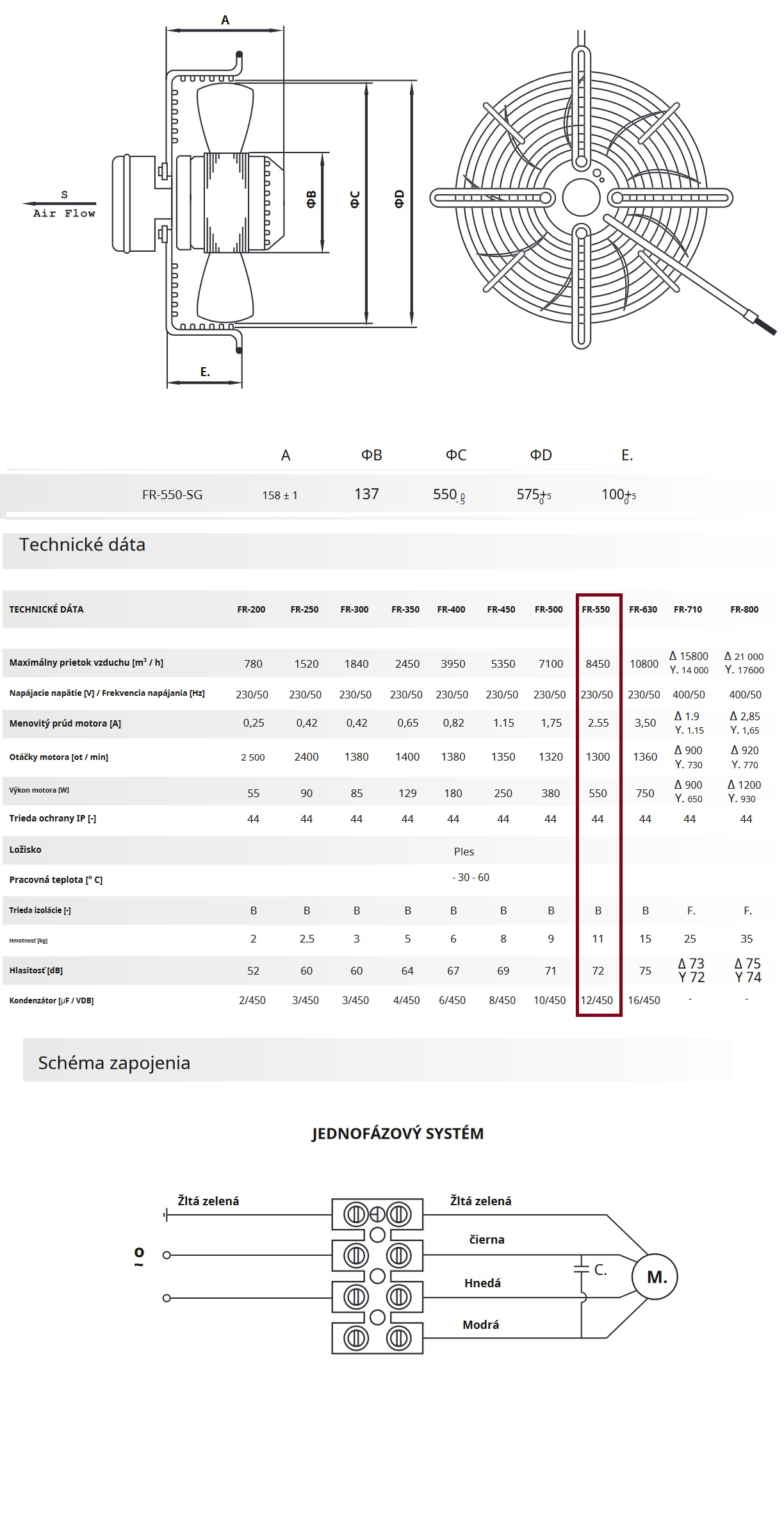 Axiálne ventilátory nasávacie REVENTON FR-SG-550 výkon 8450m3/h