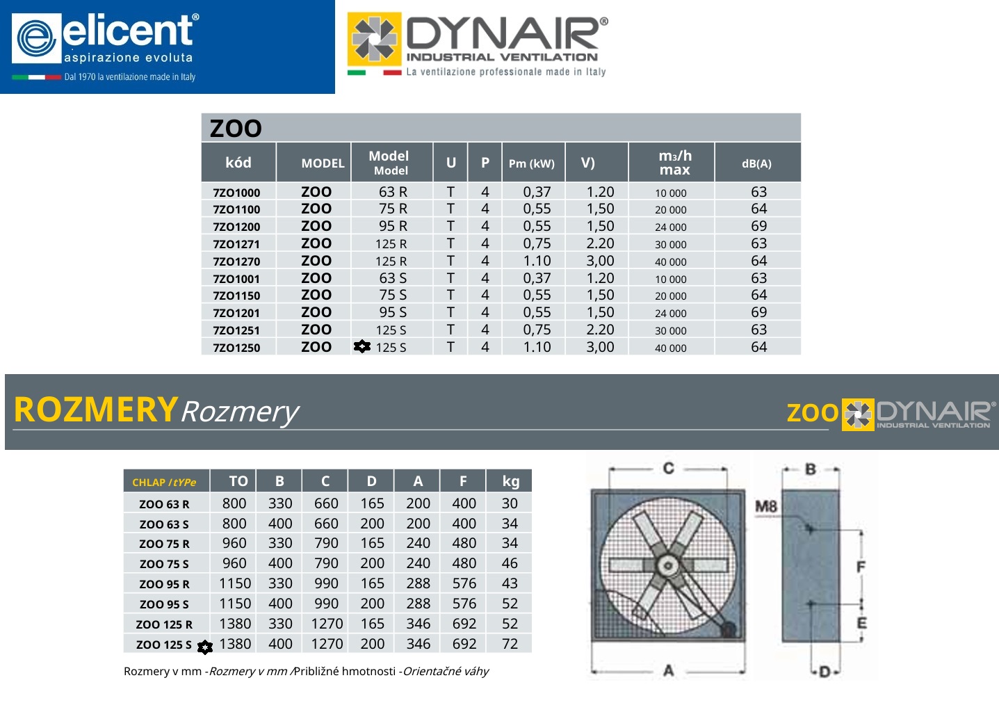 Axiálny priemyselný ventilátor ELICENT DYNAIR ZOO 125 RS 1,1 KW s