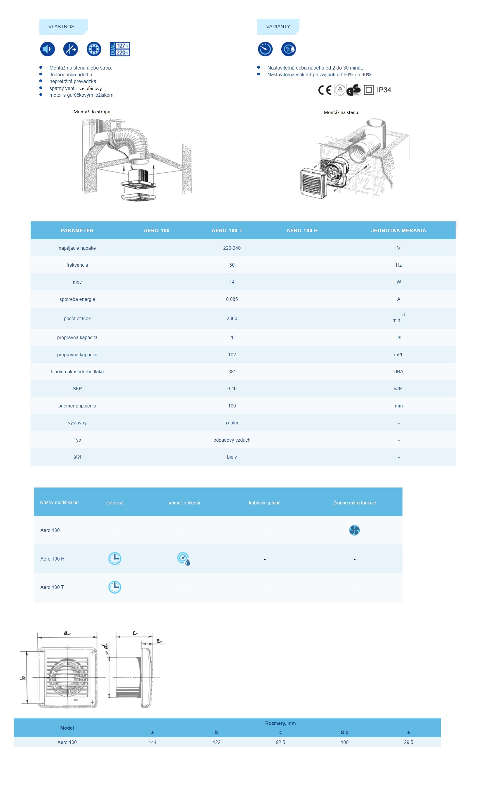 Ventilátory do kúpeľne a wc pre potrubie100mm výkon 102m3/h.Ventilátory do kúpeľne a wc Blauberg AERO sú vhodné aj na stenu aj do stropu.