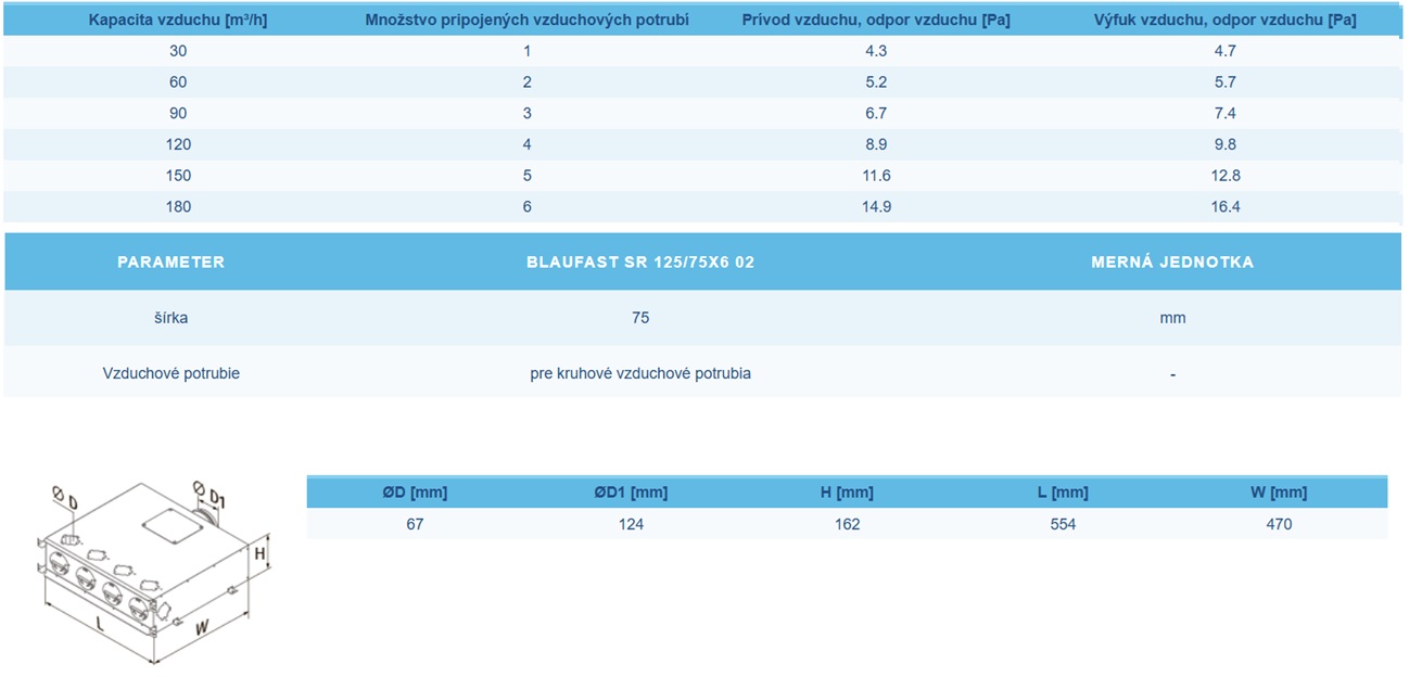 Vnútorne odhlučnené.Pripojenie vzduchového potrubia cez zodpovedajúce príruby BlauFast RKF (kupuje sa samostatne).
