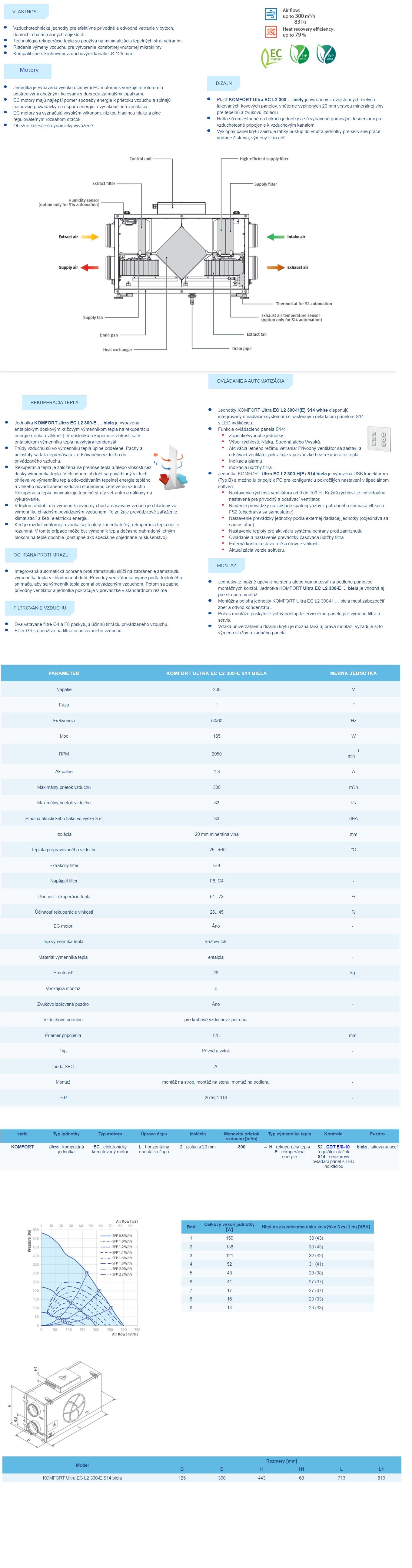Rekuperátor Blauberg KOMFORT Ultra EC L2 300-E S 14 Entalpická 300 m3/h
