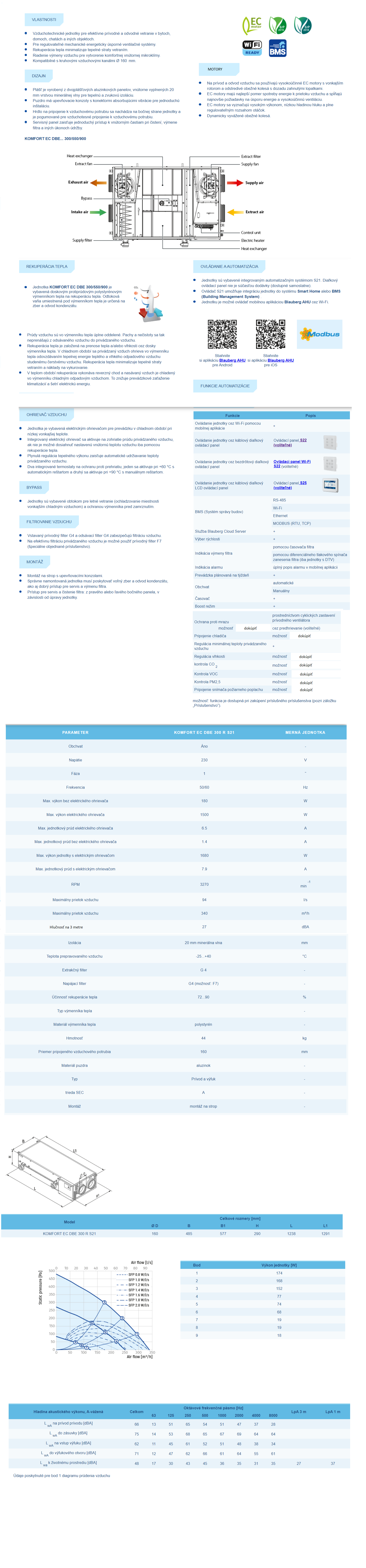 Blauberg KOMFORTEC DBE 300R S21 Entalpická 340 m3/h.Ovládanie smartfónom.Možnosť výberu nástennej riadiacej jednotky. S22 wifi,S22,S25