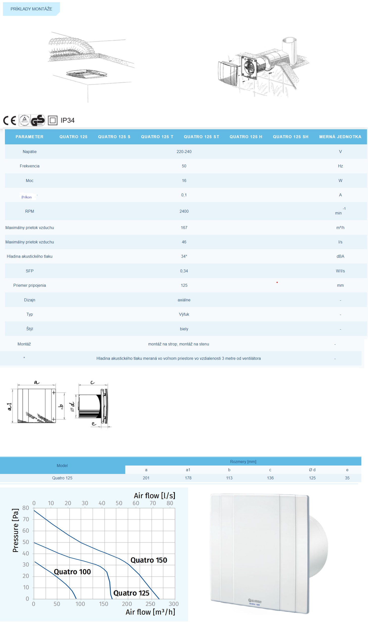 Ventilátor do kúpeľne a wc sú určené na montáž na stenu a strop.