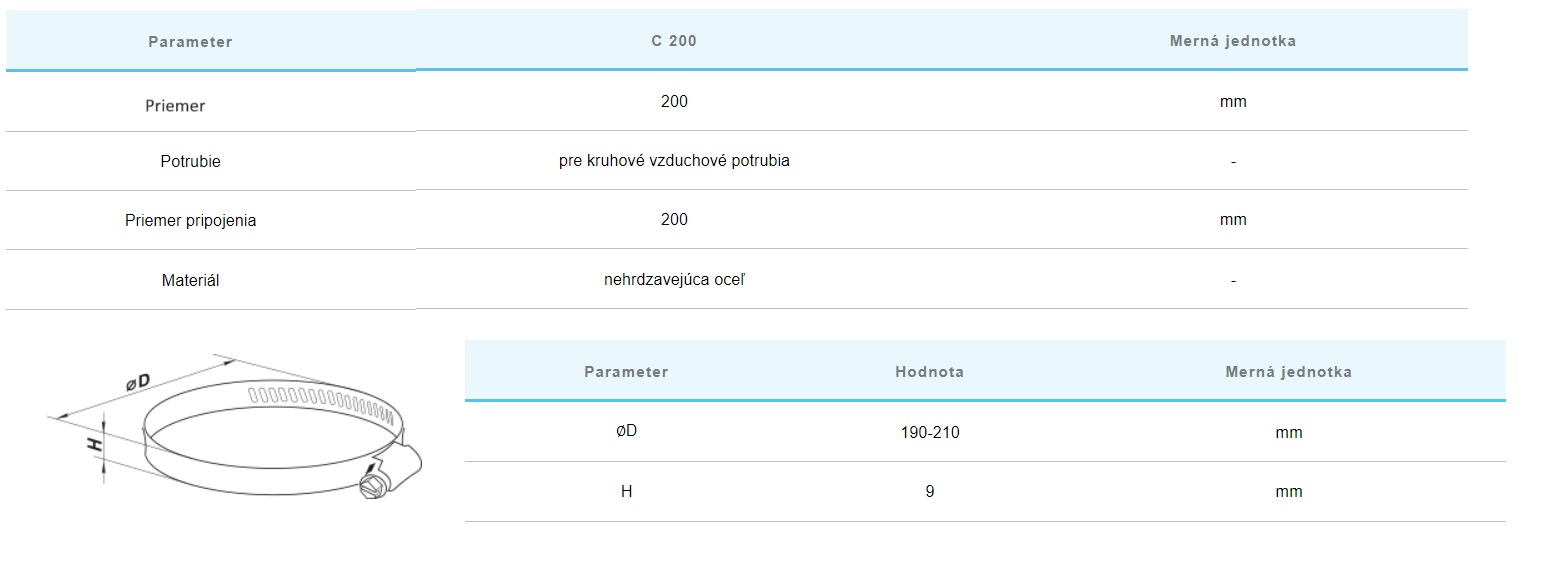 C 200mm pre potrubie 200mm C 200mm pre potrubie 200mm