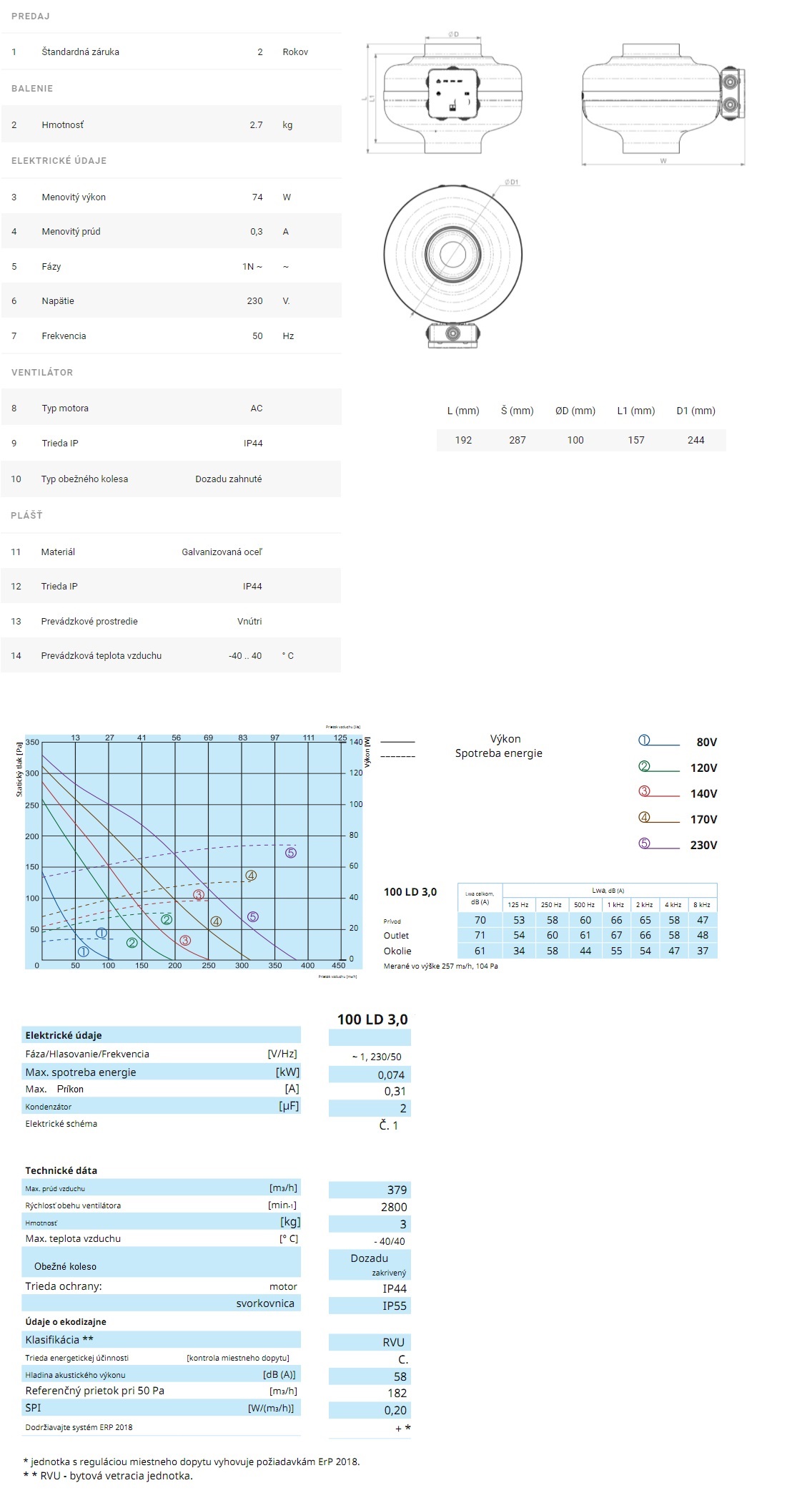 Potrubný ventilátor CAIROX VKAP 3.0 BCS 100L predstavujú rad lacných ventilátorov s efektívnym striedavým motorom, ktorý vyhovuje požiadavkám ErP 2018. Ventilátor je určený pre potrubné systémy s nízkym až stredným tlakom.