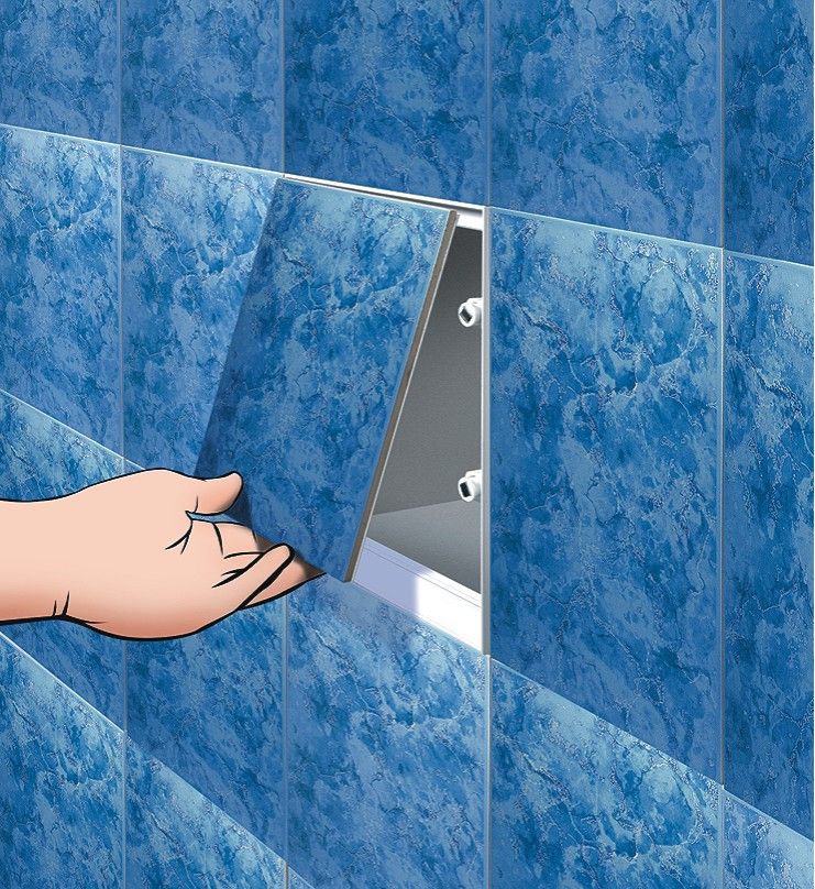 plechovú dosku.Revízne dvierka pod obklady majú Jednoduchú údržba.Široký
