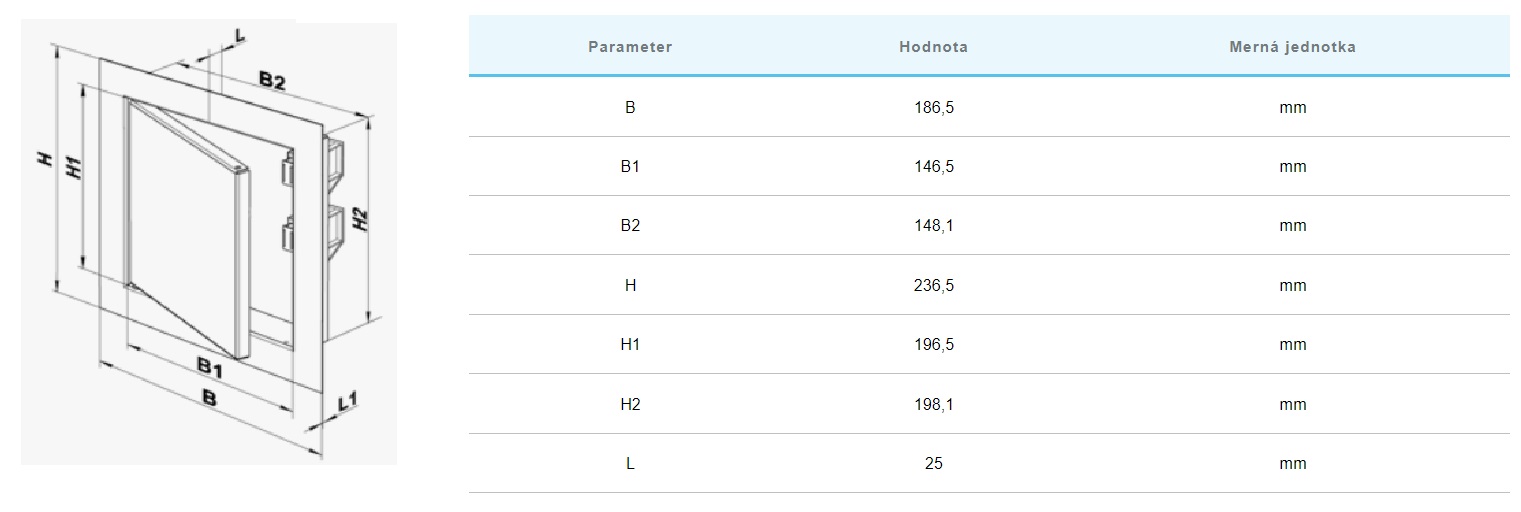 revízne dvierka tvorí vonkajší rám, ktorý pomocou lemu zakrýva