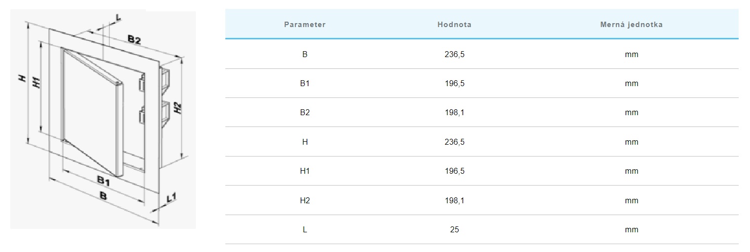 revízne dvierka tvorí vonkajší rám, ktorý pomocou lemu zakrýva