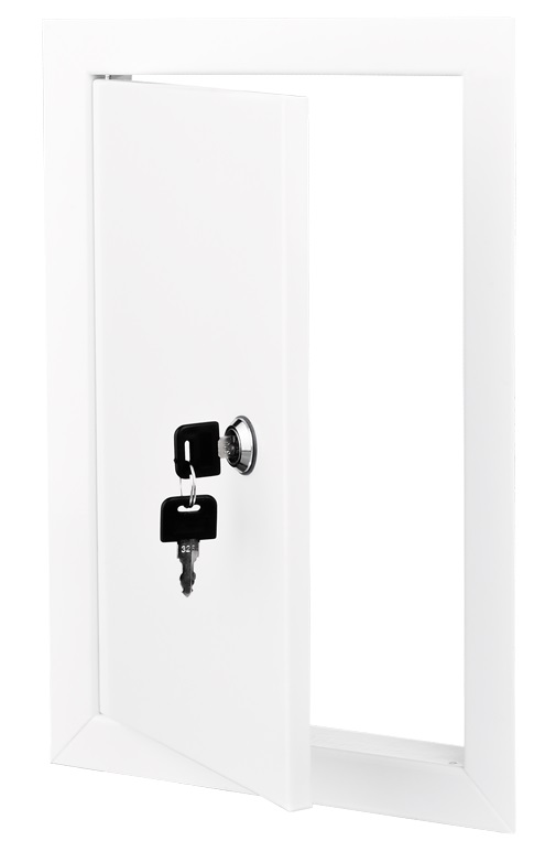 Kovové revízne dvierka sú vyrábané lisovaním z oceľového plechu. Kovové