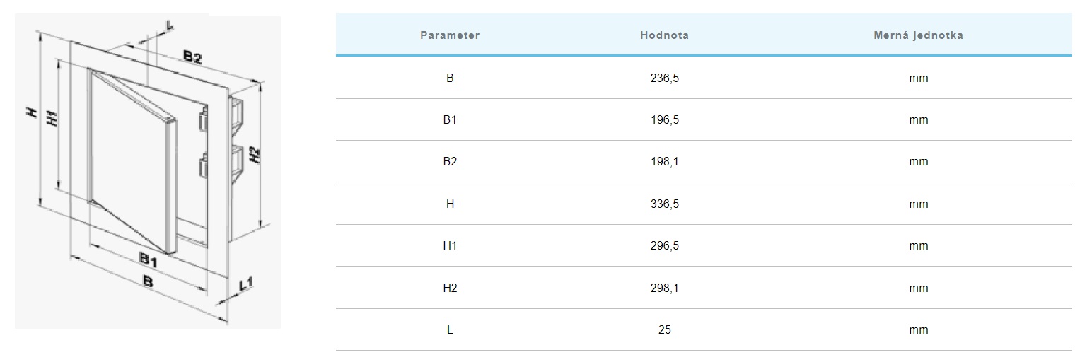 revízne dvierka tvorí  vonkajší rám, ktorý pomocou lemu zakrýva