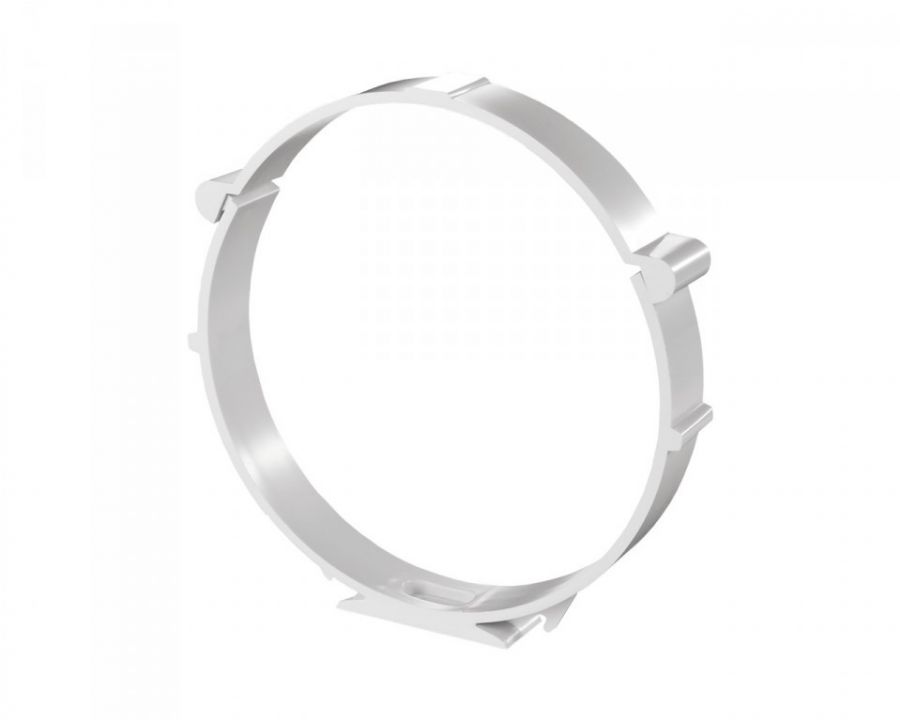 Plastový držiak pre potrubie Ø 150mm.Slúži na upevnenie na rovný povrch pomocou skrutiek. Špeciálne západky poskytujú spoľahlivú fixáciu potrubia s držiakom.Vyrobené z bieleho plastu.Montáž kruhových potrubí na stenu, strop alebo iný rovný povrch.