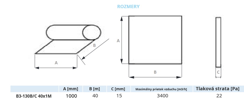 Nominálny maximálny prietok vzduchu: 3400 m3/h/m2