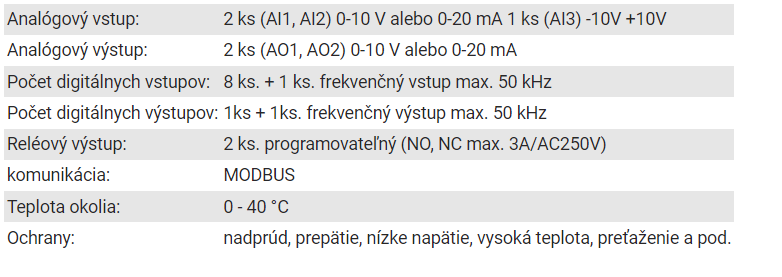 Vstupné napätie/frekvencia: 3x400V / 50/60Hz