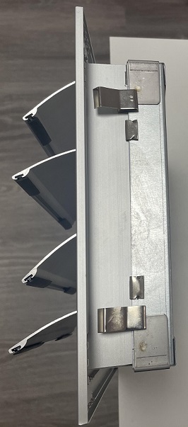 Hliníkové pretlakové vetracie mriežky s horizontálnymi pohyblivými lamelami pre montáž na stenu materiál hliník.Rám široký 25 mm