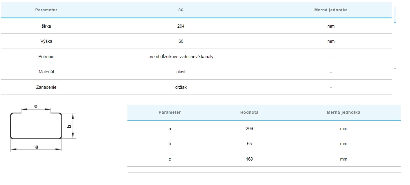 Do držiaku sa nasadzujú potrubia hranaté 60x204mm.Vyrobené z bieleho plastu.