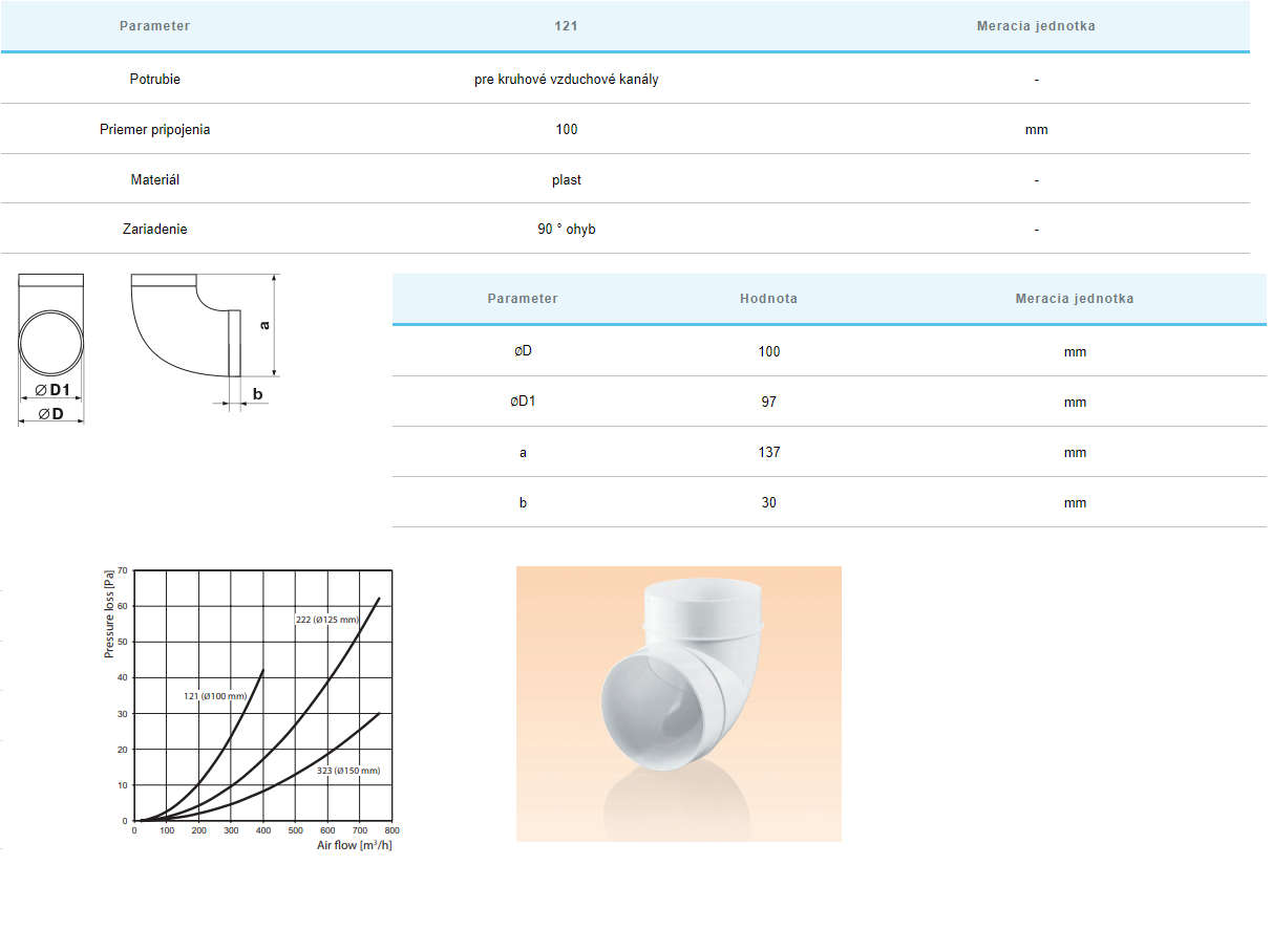 vyrobené z bieleho plastu.Plastové koleno sa používa na odbočenie o 90st v potrubnom systéme vetrania.