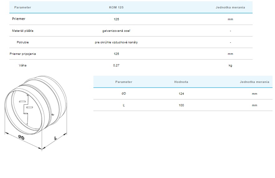 Kovová spätná klapka pružinová pre okrúhle kanály.Klapka zabraňuje