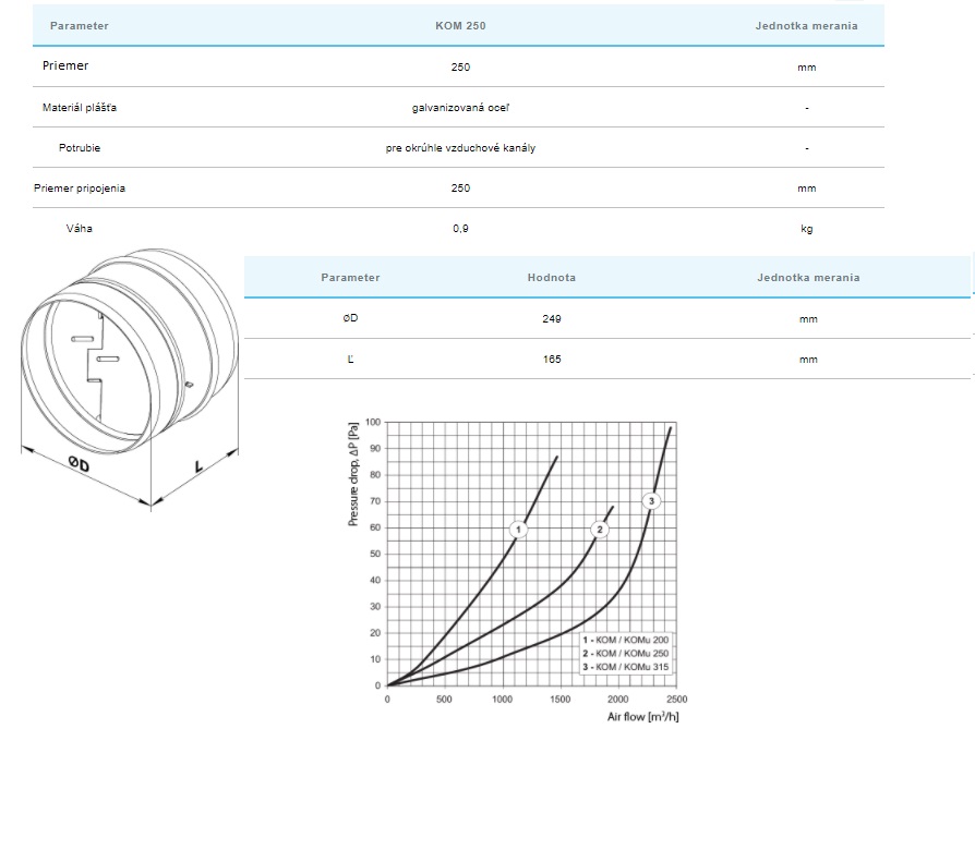 • KOM  Ø250mm spätná klapka - bez tesnenia
