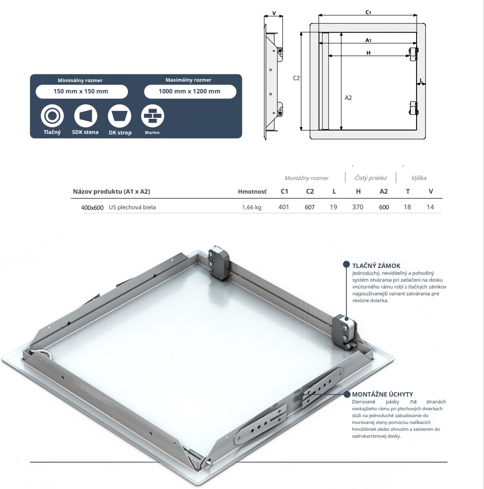 Kovové revízne dvierka ARDP 400x600 Biele Kovové revízne dvierka ARDP 40...