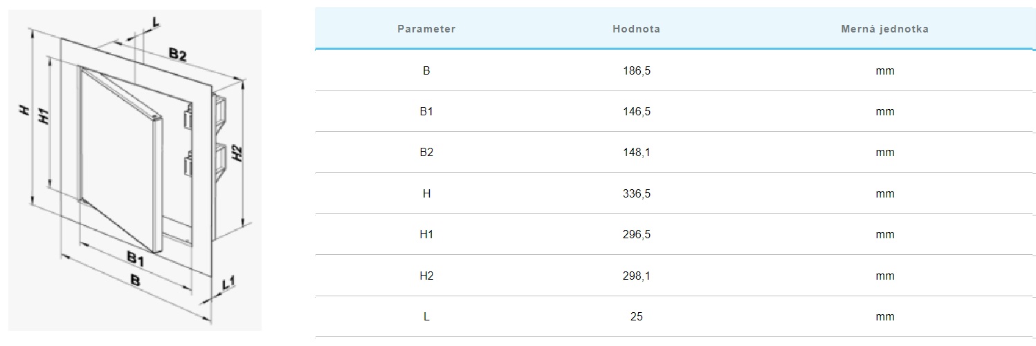revízne dvierka tvorí vonkajší rám, ktorý pomocou lemu zakrýva