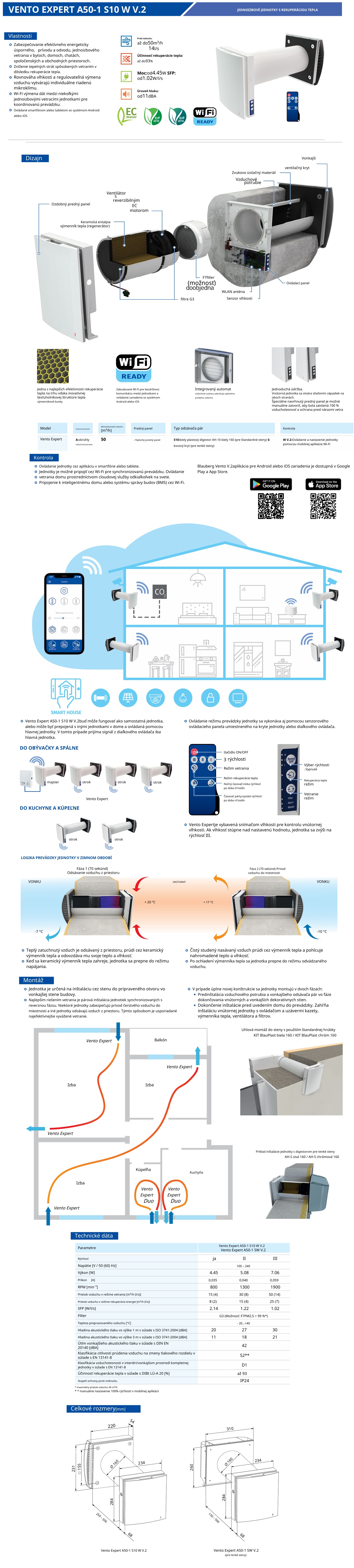 Lokálny rekuperátor Blauberg Vento Expert A50-1 S10 W V.2-riadenie aj smartfonom výkon 50m3 pri výtlaku potrubie 50cm.Možnosť dokúpiť aj 70cm potrubie dole v odporúčame dokúpiť. Rekuperačná jednotka má 3 funkcie.Môže sa použiť ako klasický ventilátor