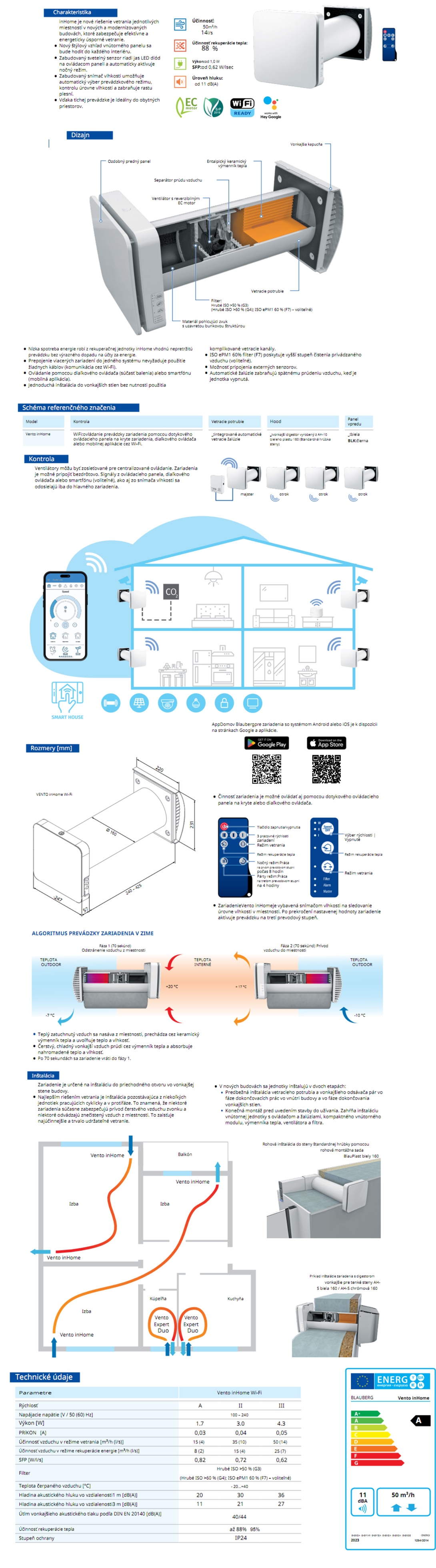 Lokálny rekuperátor Blauberg VENTO inHome W Wi-Fi-∅160mm s diaľkovým ovládaním automatickou žaluziou 50m3/h riadenie smartfonom a v režime rekuperácie 25m3/h riadenie aj smartfonom pre malé miestnosti.COMPACT