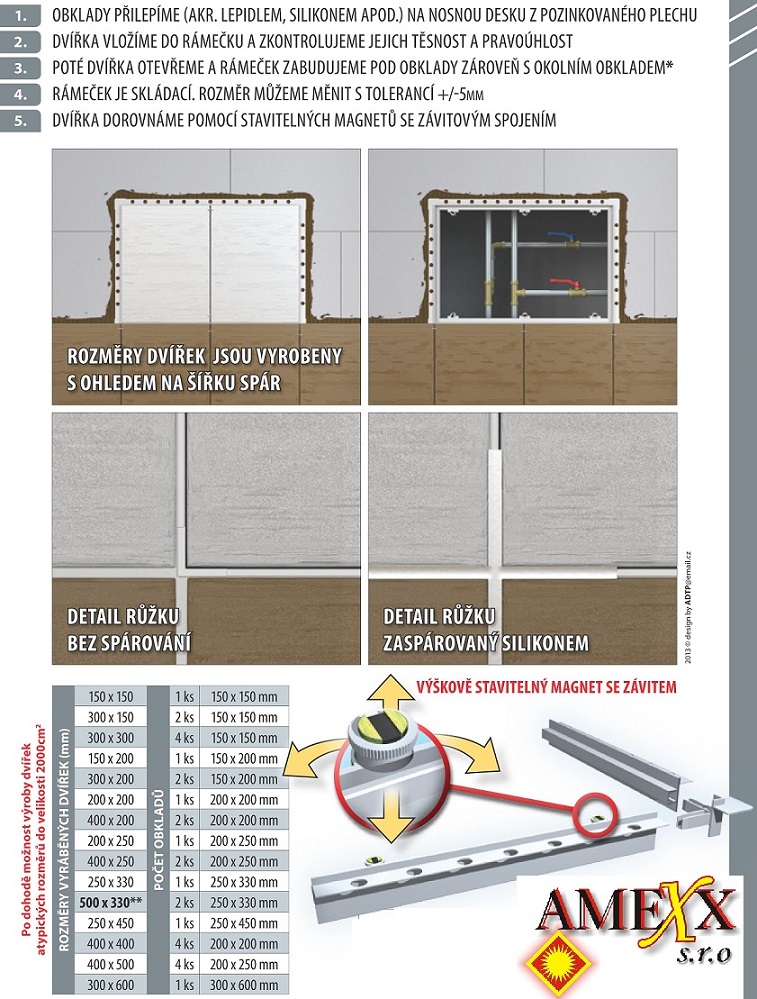 obklady sú vhodné pre menšie revízne otvory – do plochy 2000cm² Použitie