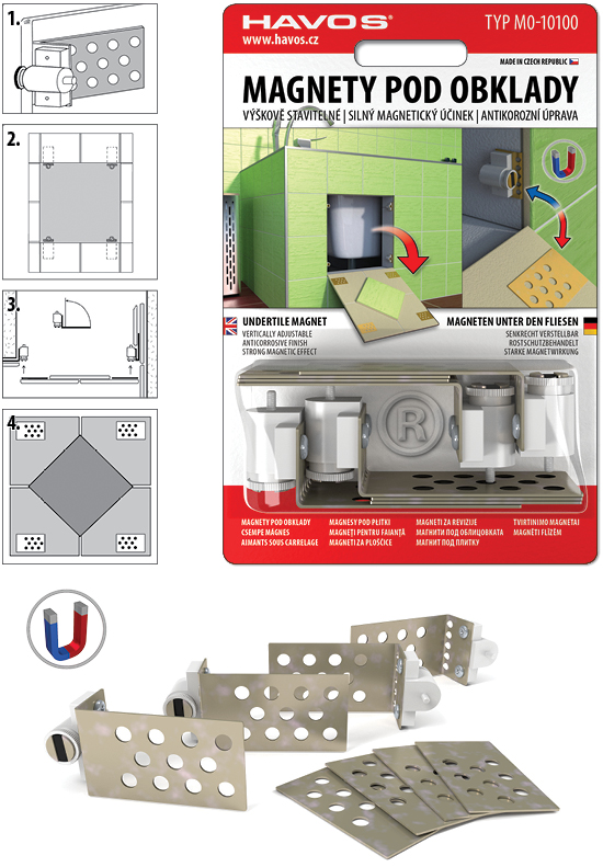 Magnety pod obklady slúží ako montážní pomôcka k zestaveniu dvierok revizného otvoru za pomoci keramických obkladov.