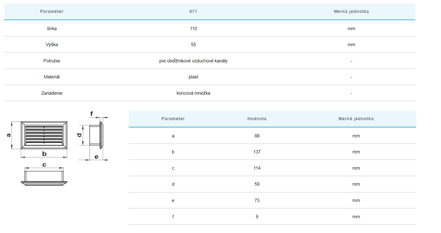 Odnímateľná predná časť uľahčuje čistenie.Na typ potrubia 55x110mm sa mriežka na potrubie nasúva .Na rozmer 60x120mm sa vsúva do potrubia.
