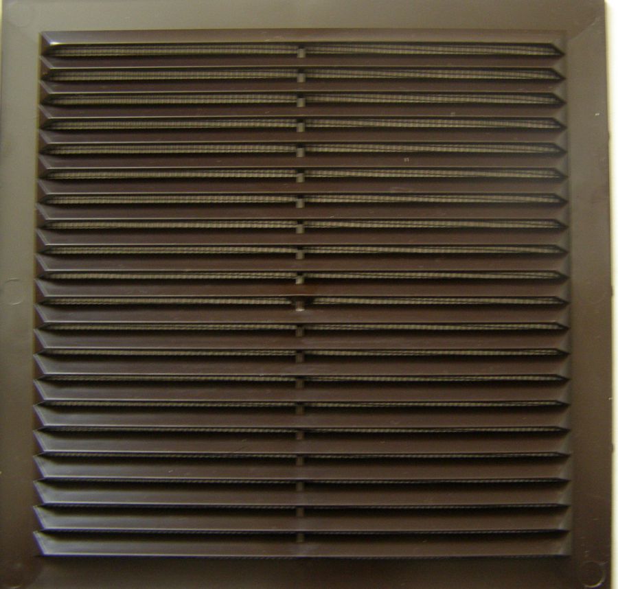 Vetracia mriežka plastová HNEDÁ so sieťkou proti hmyzu.Krycia plocha:204x204mm :materiál:ABS plast.odolný proti UV žiareniu.Vetracia mriežka