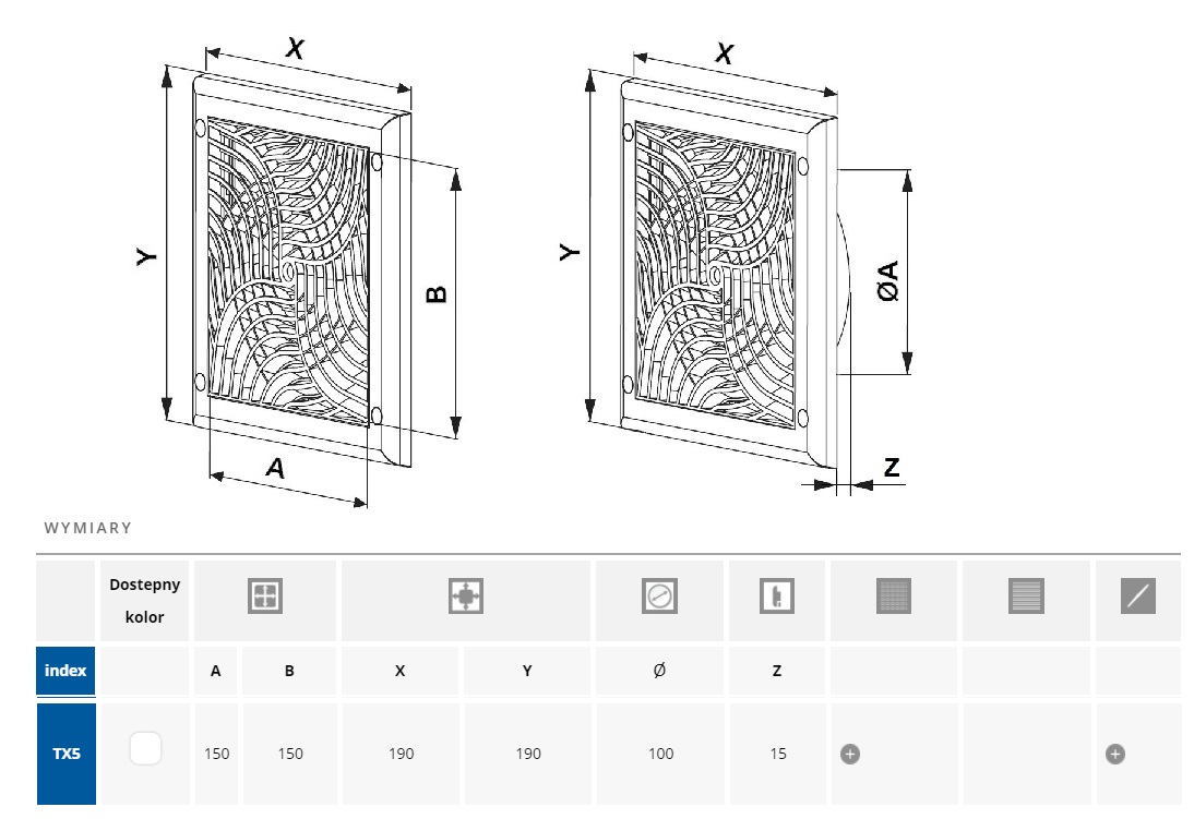 Vetracie mriežky do interiéru s prírubou:Krycia mriežka 190×190/100mmMateriál ABS plast:Farba :biela