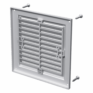 Vetracia mriežka na fasádu plastová biela so sieťkou proti hmyzu.Krycia plocha:300x300mm:materiál:ABS plast.odolný proti UV žiareniu.Vetracia
